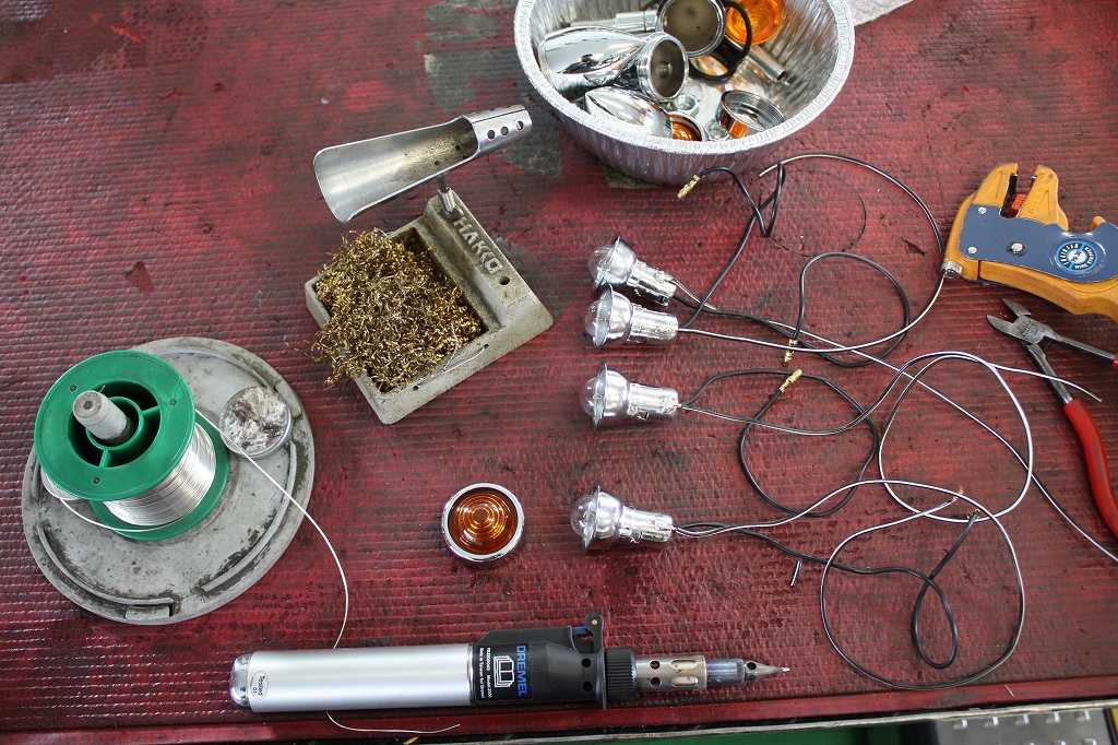 方向指示器の接触不良を防止のため直接アース線をハンダ付けて