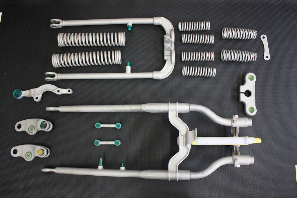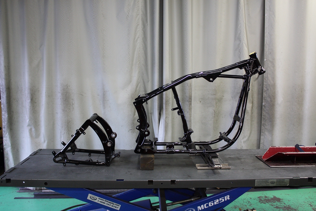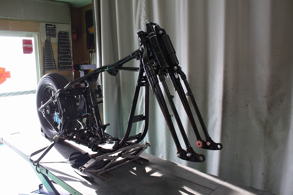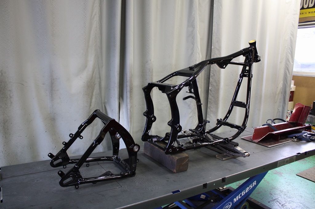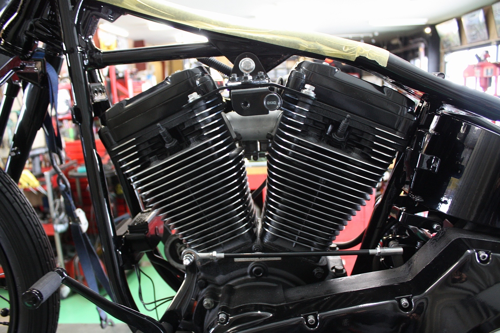 配線廻りとハンドルTOPブリッジの入荷待ちとタンク塗装出来上がるまでお預けです。。。